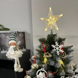 - Łatwy montaż: Stabilne mocowanie na czubku choinki utrzymuje gwiazdę pewnie na miejscu.