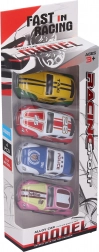 Ten świetny zestaw zawiera cztery wytrzymałe i dopracowane w detalach wyścigowe autka, które wystarczy pociągnąć do tyłu i puścić. Dzięki kompaktowemu rozmiarowi 7 cm doskonale sprawdzą się w domowych wyścigach, na torach przeszkód oraz w podróży. Metalowe wykonanie zapewnia dłuższą żywotność i zabawę bez kompromisów.