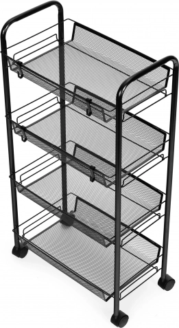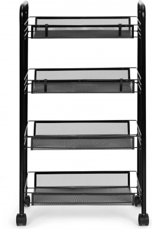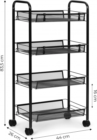 Czarny metalowy organizer półkowy do kuchni lub łazienki, 4 półki na kółkach, ModernHome