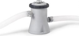 W skład zestawu wchodzi pompa filtrująca (1 250 l/h), która utrzymuje wodę w czystości i przejrzystości. Wystarczy wybrać równą powierzchnię, napompować górny pierścień i napełnić wodą – konstrukcja uformuje się sama. Certyfikowana jakość Intex gwarantuje niezawodność i długą żywotność.