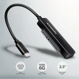 Adapter AXAGON FASTPort2 umożliwia łatwe podłączenie i szybką wymianę SATA 2,5" HDD lub SSD dzięki połączeniu przez kabel USB-C o długości 20 cm. Dzięki wsparciu USB 3.2 Gen 1, oferuje prędkość transferu do 5 Gbps, a funkcja Plug & Play zapewnia automatyczne rozpoznawanie urządzenia.