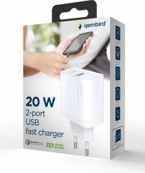 Szybka ładowarka USB 20W z podwójnym portem do efektywnego i szybkiego ładowania Twoich urządzeń. Obsługa USB PD i QC 3.0 dla maksymalnej wydajności.