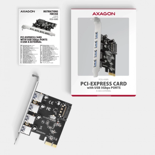 Kontroler PCIe AXAGON z 4 portami USB 3.2 Gen 1, UASP i zasilaniem SATA