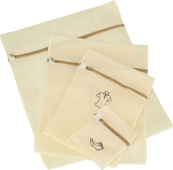 Uniwersalny zestaw woreczków do prania jest idealny do ochrony delikatnych tkanin w pralce. Każdy woreczek ma inny rozmiar i piktogram dla łatwego wyboru, więc bez obaw wypierzesz bieliznę, biustonosze, pończochy oraz większe elementy garderoby. Mocna siateczkowa tkanina umożliwia skuteczne pranie bez zapychania i chroni materiały przed zaciągnięciami oraz deformacją.