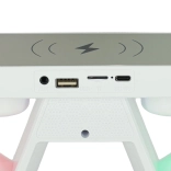 głośnik, BT, FM, karta SD, AUX, bezprzewodowe ładowanie, RGB, zegar, budzik