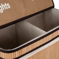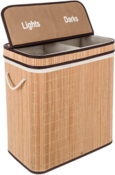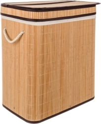 Ten dwukomorowy kosz na pranie wykonany jest z wytrzymałego bambusowego materiału, który jest nie tylko trwały, ale także ekologiczny. Unikalna konstrukcja zapewnia stabilność kosza nawet przy jego pełnym wypełnieniu. Z pojemnością do 100 litrów idealny jest do większych ilości prania. Elegancki i stylowy design łatwo dopasuje się do każdego wnętrza.