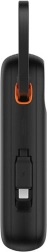 Wbudowany przewód USB‑C uzupełniają dodatkowe porty, dzięki czemu możesz ładować jednocześnie telefon, słuchawki i tablet – bez konieczności noszenia dodatkowych kabli.
