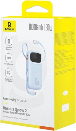 Kompaktowa powerbank BASEUS Qpow 2 o pojemności 10 000 mAh i mocy 30 W szybko naładuje telefon, tablet i słuchawki. Ma wbudowane przewody USB‑C, wiele portów do jednoczesnego ładowania oraz wyświetlacz LED z dokładnym stanem baterii. Idealna w podróży dzięki lekkiej i stylowej konstrukcji oraz zaawansowanym zabezpieczeniom.