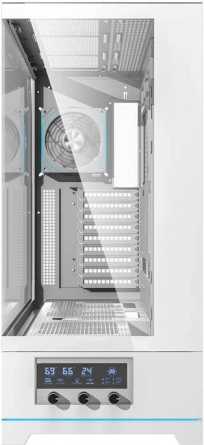 Obsługuje do 11 wentylatorów oraz chłodzenie wodne z radiatorami do 480 mm, zapewniając wydajne chłodzenie i cyrkulację powietrza.