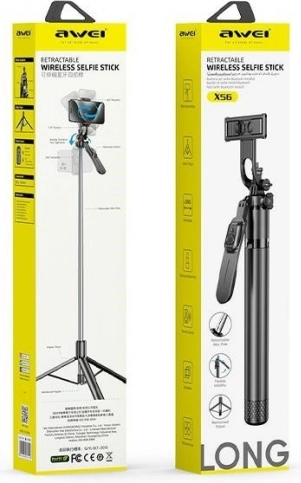 AWEI X56 wielofunkcyjny kijek do selfie ze statywem i pilotem Bluetooth