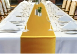 Bieżnik na stół Ruhhy w złotym kolorze to doskonały wybór do dekoracji stołu przy każdej uroczystej okazji. Wykonany jest z gęstej tkaniny satynowej, która jest odporna na uszkodzenia, zapewniając tym samym wielosezonowe użycie.