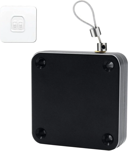 Solidny i kompaktowy zamykacz do drzwi wewnętrznych. Bardzo łatwy montaż i obsługa – wystarczy przykleić zamykacz do ściany, dedykowaną klamkę do skrzydła drzwi, a następnie pociągnąć za stalową linkę i zaczepić ją o klamkę. Całkowicie bezobsługowy – nie wymaga żadnego dodatkowego źródła zasilania.