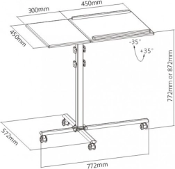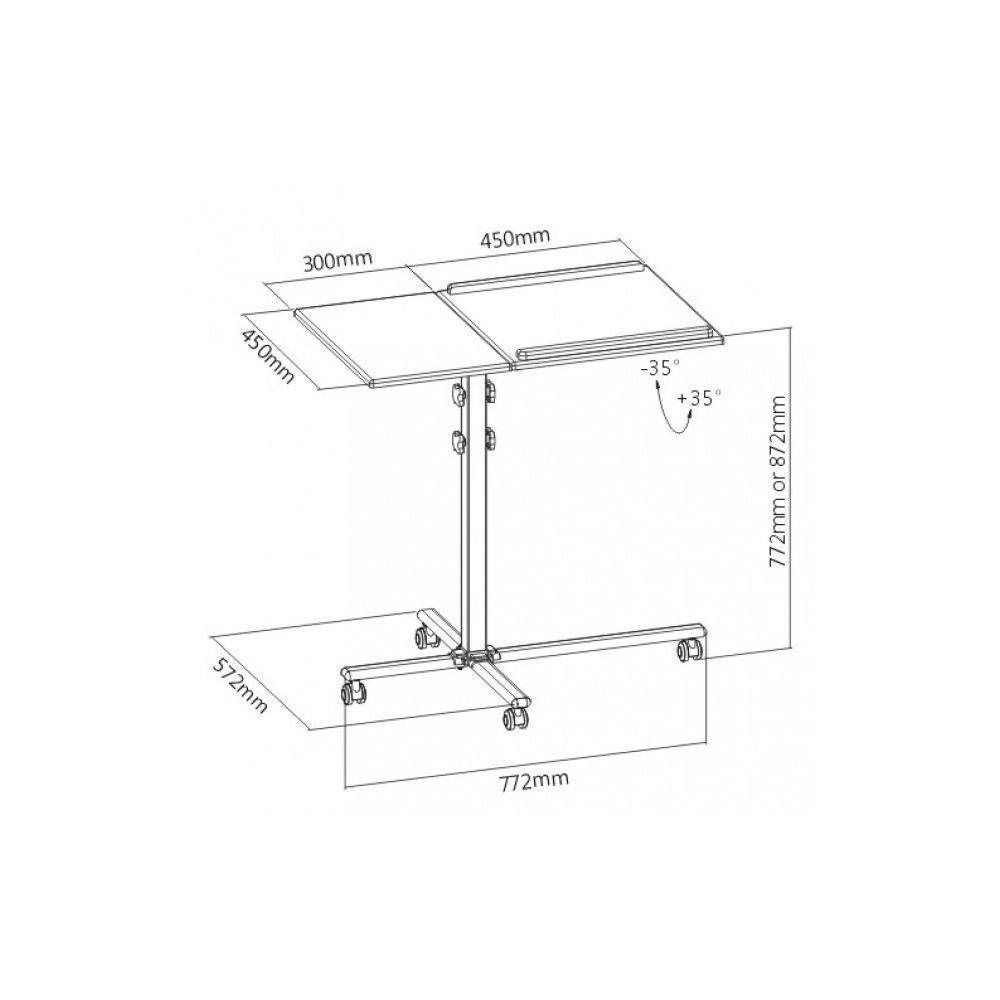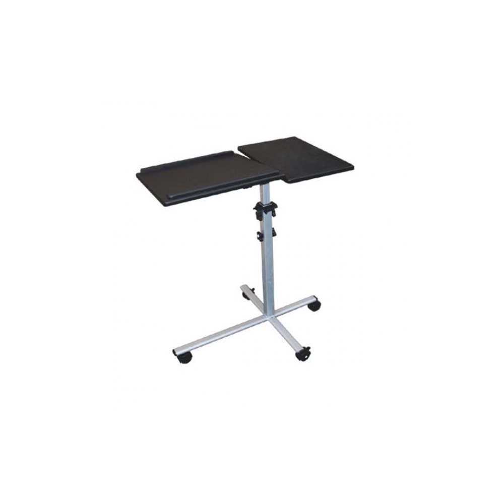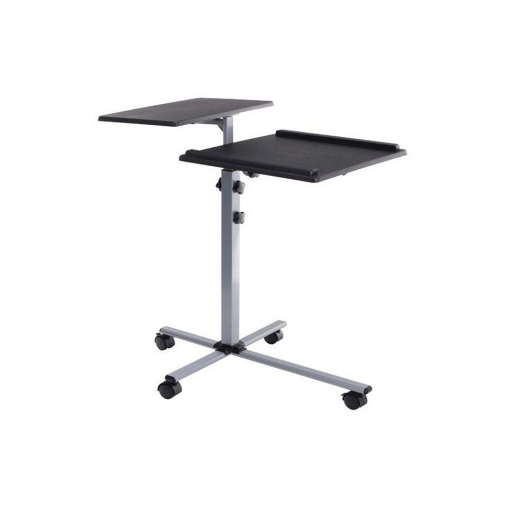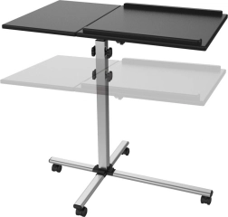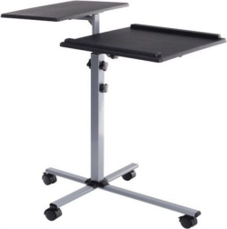 Ten mobilny stół jest uniwersalnym pomocnikiem przy prezentacjach w firmach lub na szkoleniach. Jego podzielona powierzchnia zapewnia wystarczająco miejsca zarówno dla projektora, jak i laptopa, a wysokość regulowana powierzchnia pozwala dostosować się do potrzeb użytkownika. Ponadto, posiada ramy na jednej z półek, które zapobiegają zsunięciu się przechowywanego urządzenia.