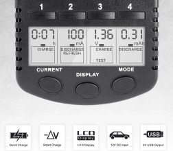 Dzięki zintegrowanym trybom umożliwia nie tylko ładowanie, ale także rozładowanie i test pojemności. Udoskonalony tryb rozładowania/testu potrafi sprawdzić i zapisać pojemność dowolnego ogniwa w zakresie 1,2–1,6 V (w tym alkalicznych i Ni‑Zn) – praktyczne do porównania rzeczywistego stanu baterii. Informacyjny wyświetlacz LCD na bieżąco pokazuje kluczowe dane i ułatwia kontrolę procesu.