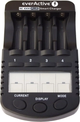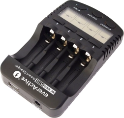 Niezawodna inteligentna ładowarka EVERACTIVE jest przeznaczona do ładowania i konserwacji 1–4 akumulatorów R6 AA oraz R03 AAA typu Ni-MH i Ni-Cd. Docenisz prostą obsługę, niezależne sterowanie każdym slotem oraz zoptymalizowane algorytmy dla ogniw o wyższej rezystancji wewnętrznej i nowoczesnych akumulatorów LSD (Ready to Use, ENELOOP).