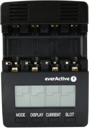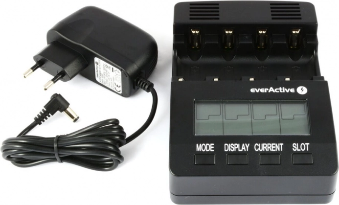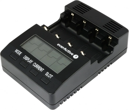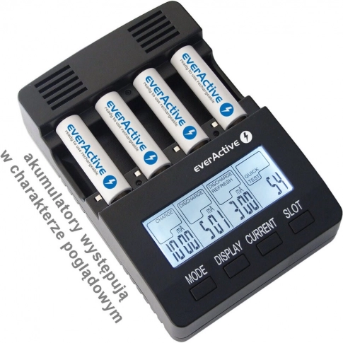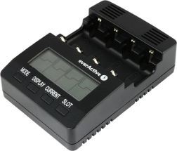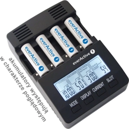 EVERACTIVE NC-3000 to inteligentna ładowarka z zaawansowaną diagnostyką do akumulatorów Ni-MH/Ni-Cd. Każdy z czterech slotów jest sterowany niezależnie, dzięki czemu możesz jednocześnie ładować różne typy i pojemności. Duży podświetlany wyświetlacz LCD pokazuje napięcie, prąd, czas i pojemność, ułatwiając kontrolę nad całym procesem.