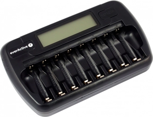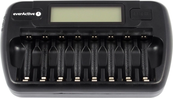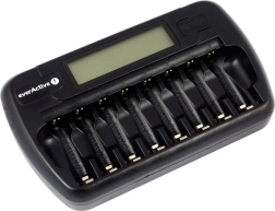 Ładowarka EVERACTIVE NC-800 została zaprojektowana do szybkiego i niezawodnego ładowania akumulatorów Ni-MH. Dzięki ośmiu niezależnym slotom można ładować jednocześnie do 8 sztuk AA lub AAA, również o różnych pojemnościach i od różnych producentów. Każde ogniwo jest monitorowane oddzielnie dla optymalnej dbałości o baterie.