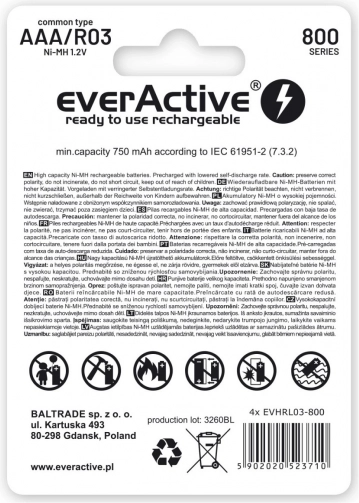 Akumulatory ładowalne AAA R03 800 mAh w wersji Ready To Use są fabrycznie wstępnie naładowane, dzięki czemu można je od razu włożyć do urządzenia. Seria Silver Line nawiązuje do jakości linii Professional, a jednocześnie oferuje świetny stosunek ceny do wydajności.