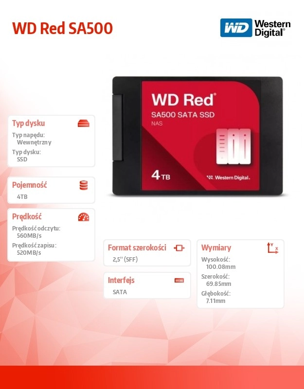 Dzięki technologii Western Digital 3D NAND wykorzystasz maksymalną wydajność interfejsu SATA, zachowując długą żywotność. Świetnie sprawdza się w wymagających zadaniach – od baz danych i OLTP, przez współpracę wielu użytkowników, po renderowanie zdjęć i edycję wideo 4K/8K.