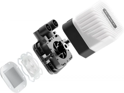Jednolita czarna kolorystyka świetnie komponuje się z zestawami w stylu „all-black”. Łatwo dostępny port napełniania oraz dołączona butelka z cieczą chłodzącą ułatwiają konserwację i wydłużają żywotność całego układu.