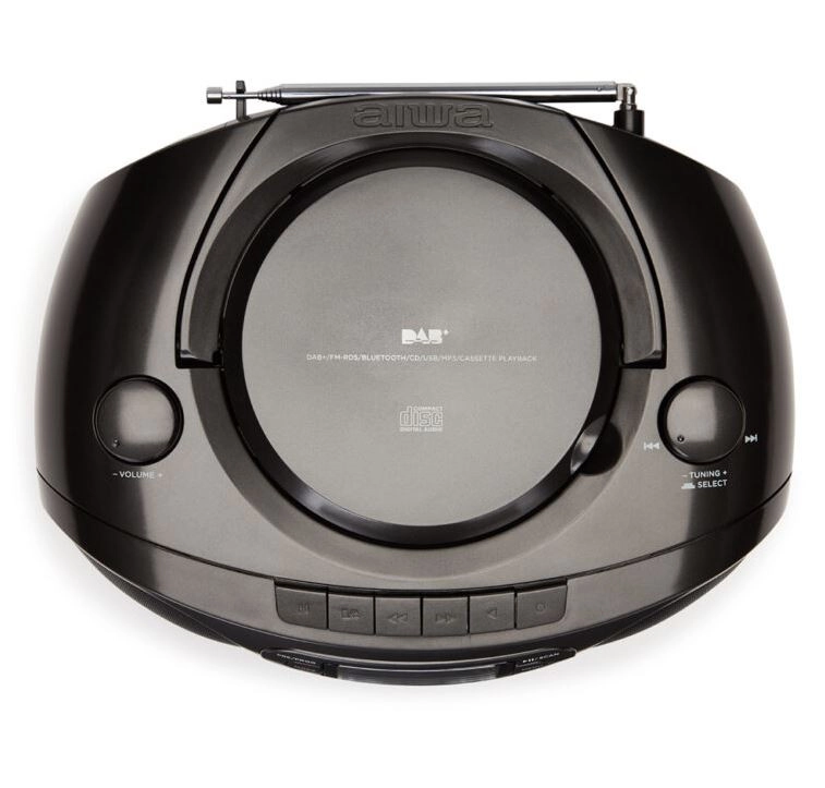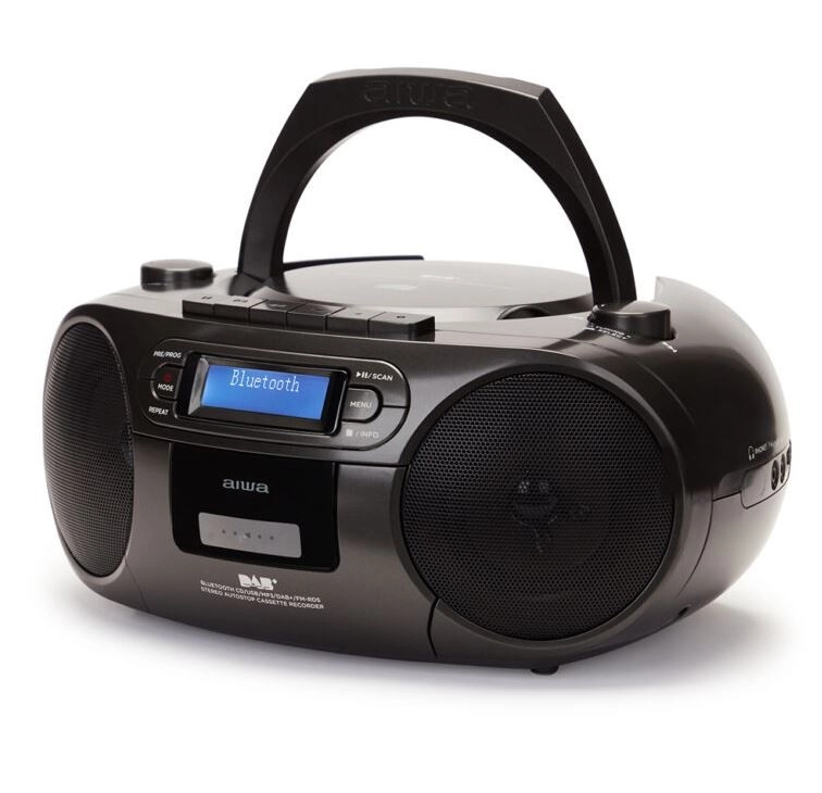 Ciesz się ulubioną muzyką w jednym, kompaktowym urządzeniu. Ten przenośny boombox AIWA łączy CD/MP3, odtwarzacz kaset, USB, Bluetooth oraz radio DAB/FM z czystym dźwiękiem i łatwą obsługą – idealny w domu i w podróży.