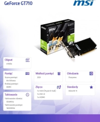 MSI GeForce GT 710 2GB to doskonały wybór dla użytkowników szukających solidnej karty graficznej do kina domowego lub zastosowań biurowych. Dzięki pamięci GDDR3 i 64-bitowej magistrali pamięci możesz liczyć na płynną pracę w typowych zadaniach biurowych oraz odtwarzaniu wideo w wysokiej rozdzielczości.