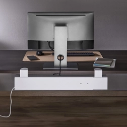 Trzy poziomy długości dla idealnego dopasowania do szerokości biurka oraz ilości przewodów i elementów zasilających.