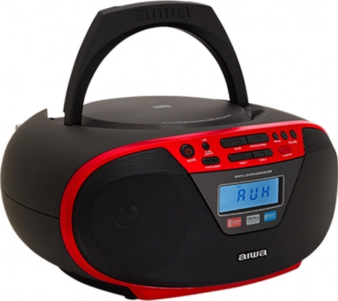 Stylowy i łatwy do przenoszenia boombox AIWA łączy nowoczesne wyposażenie z prostą obsługą. Bezprzewodowo strumieniuj muzykę z telefonu przez Bluetooth v5.0 + EDR (A2DP) z zasięgiem do 10 m lub sięgnij po swoją kolekcję płyt dzięki górnemu mechanizmowi CD z japońską optyką. Zintegrowane radio FM PLL oferuje 40 presetów, więc ulubione stacje włączysz w mgnieniu oka.