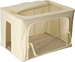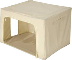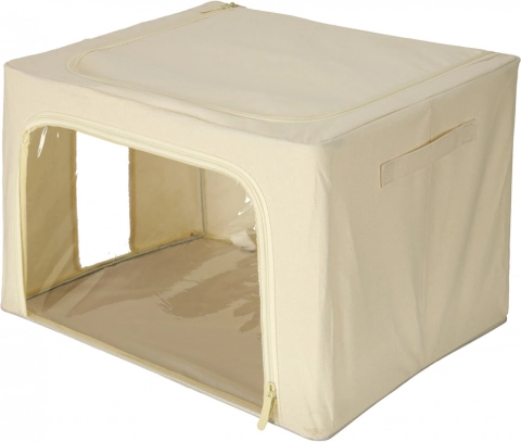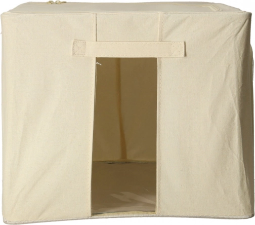 Ten kremowy tekstylny organizer jest idealny na puchowe kołdry, poduszki, koce, ręczniki oraz odzież sezonową. Dzięki przedniemu otworowi na zamek wygodnie wyjmiesz rzeczy nawet z dolnych półek bez konieczności przesuwania pudełka. Przezroczysty front pozwala od razu zobaczyć, co jest w środku.