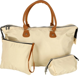 Duża główna komora na zamek i ponadczasowy beżowy kolor do uniwersalnego użytku przy wózku i jako torba podróżna.