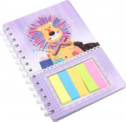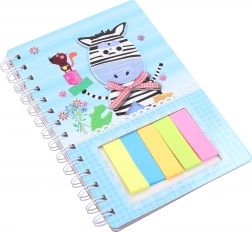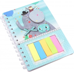 Uroczy notatnik z czterema motywami zwierzątek ucieszy zarówno dzieci, jak i dorosłych. Zawiera 60 kartek do zapisywania notatek oraz naklejki do wyróżniania ważnych zadań. Praktyczny format 12,1 × 18,5 cm mieści się w torebce i plecaku.