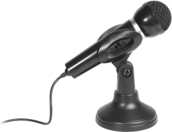 W zestawie znajduje się stabilny stojak biurkowy, który utrzymuje mikrofon na miejscu, a dzięki odłączanej konstrukcji możesz w każdej chwili wziąć go do ręki – na przykład podczas karaoke lub prowadzenia spotkania. Wbudowany wyłącznik umożliwia natychmiastowe wyciszenie, a plug & play gwarantuje bezproblemowe podłączenie bez sterowników.