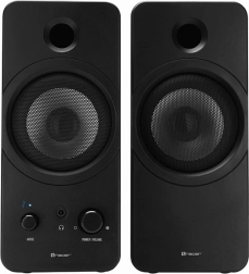 Delektuj się ulubioną muzyką, filmami i grami bez zbędnego plątaniny kabli. Głośniki TRACER Mark 2.0 łączą praktyczne Bluetooth z klasycznym wejściem 3,5 mm AUX, dzięki czemu łatwo sparujesz je z laptopem, smartfonem, tabletem i komputerem PC. 12 W RMS gwarantuje pełniejszy, dynamiczny dźwięk i przyjemnie mięsisty bas.