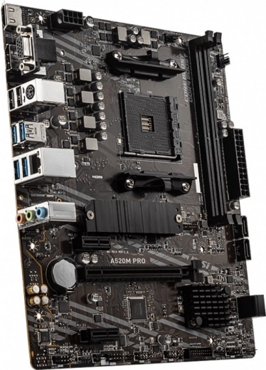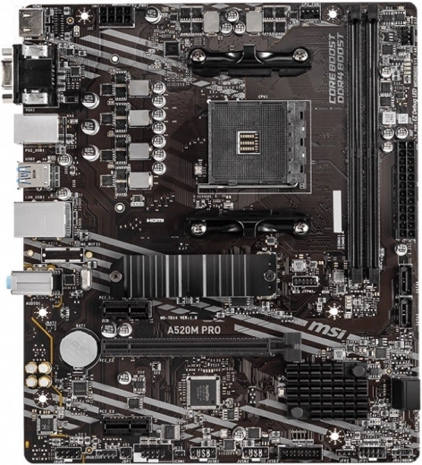 Płyta główna MSI A520M PRO jest zaprojektowana z myślą o potrzebach nowoczesnych zestawów PC, oferuje szeroką gamę portów i gniazd do rozbudowy i połączeń. Jest kompatybilna z procesorami AMD Ryzen i obsługuje pamięć DDR4 z prędkością do 4600 MHz.