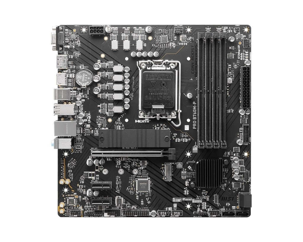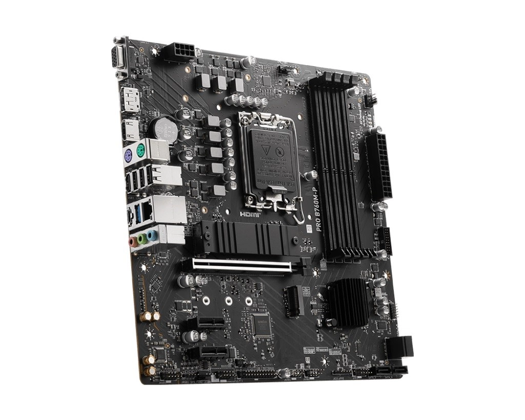 MSI PRO B760M‑P to niezawodna płyta główna microATX dla gniazda LGA1700, obsługująca procesory Intel Core 12. i 13. generacji oraz szybką pamięć DDR5. Oferuje PCIe 4.0, dwa sloty M.2 Gen4, nowoczesne wyjścia obrazu HDMI i DisplayPort oraz technologie Core Boost i Memory Boost dla maksymalnej wydajności i stabilności.
