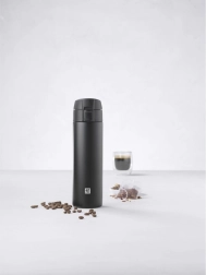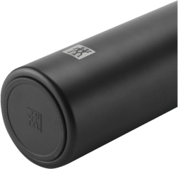 Minimalistyczny i wytrzymały termokubek ZWILLING Thermo w matowej czerni łączy doskonałą izolację z przemyślaną ergonomią. Praktyczną pokrywkę z przyciskiem otwierasz jednym naciśnięciem, blokada zapobiega przeciekaniu w transporcie, a całą pokrywkę można łatwo rozłożyć do dokładnego czyszczenia.
