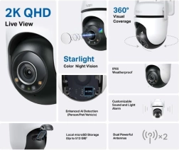Kamera Tapo C520WS jest zaprojektowana do efektywnego monitoringu zewnętrznego z funkcjami, które obejmują rozdzielczość do 2560 × 1440, co pozwala uchwycić więcej szczegółów niż tradycyjne kamery 1080p. Tryb nocny Starlight z pełnobarwnym odwzorowaniem zapewnia doskonałą widoczność nawet przy niskim oświetleniu dzięki obiektywowi F1.6.
