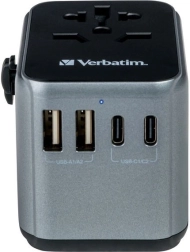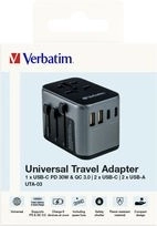 Adapter podróżny VERBATIM UTA-03 to inteligentne rozwiązanie do zasilania w ponad 180 krajach. Oferuje ładowanie 6 w 1 przez gniazdo AC, 3× USB‑C i 2× USB‑A, obsługuje Power Delivery 30 W oraz Quick Charge 3.0 dla superszybkiego ładowania. Kompaktowy, bezpieczny i idealny do laptopów, telefonów oraz akcesoriów.