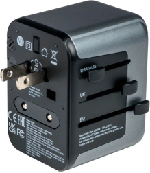 Przesuwane przełączniki dla EU/UK/USA oraz obrotowe bolce dla AUS/CN obejmują większość świata. Kompaktowa obudowa łatwo mieści się w każdym bagażu.