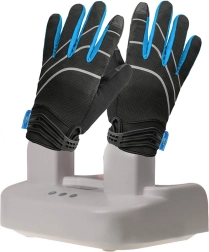 Dwa wydłużone ramiona z wentylacją oraz wbudowany wentylator przyspieszają suszenie i równomiernie rozprowadzają ciepłe powietrze wewnątrz całego obuwia.