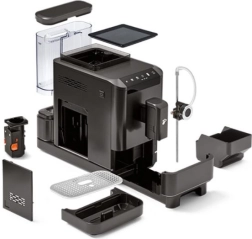 Dzięki dużemu zbiornikowi na ziarna o pojemności 300 g i zbiornikowi na wodę 1,4 l (wyjmowanemu z kilku stron) możesz cieszyć się większą ilością kawy przy rzadszym uzupełnianiu. Zintegrowany stalowy młynek stożkowy optymalizuje mielenie pod mieszanki Tchibo – idealne zgranie mielenia, temperatury, ciśnienia i ilości wody dla perfekcyjnego rezultatu w filiżance.