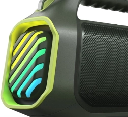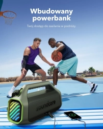 Wytrzymała konstrukcja z klasą ochrony IPX7 poradzi sobie z deszczem, basenem i mokrymi przygodami – głośnik nawet unosi się na wodzie. Bardzo długi czas pracy do 24 godzin z akumulatora 10 000 mAh oraz możliwość działania jako powerbank do doładowania telefonu utrzymają rytm przez cały dzień.