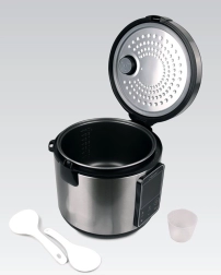 Multicooker Maestro to idealny wybór do rodzinnego gotowania. Dzięki pojemności 5 litrów przygotujesz zupy, dania duszone, ryż, kasze i desery dla kilku osób. Moc 700 W gwarantuje szybkie i efektywne działanie, a stal nierdzewna i wytrzymałe tworzywo nadają urządzeniu nowoczesny wygląd i długą żywotność.