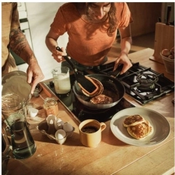 Patelnia wykonana jest w 90% z recyklingowanej stali nierdzewnej, co czyni ją ekologicznym wyborem do Twojej kuchni.