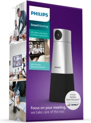 Philips SmartMeeting to kompletne rozwiązanie do konferencji audio i wideo w jakości HD z asystentem Sembly Meeting Assistant, który zadba o automatyczne notatki, transkrypcje i punkty działań. Kamera 4K ze śledzeniem głosu i elastycznym pan/tilt/zoom uchwyci każdego uczestnika w idealnie ostrym obrazie, a mikrofon 360° z czterema przetwornikami rejestruje mowę z odległości do 6 metrów.