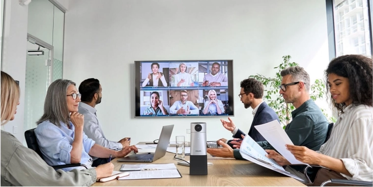 Ulepsz swoje hybrydowe spotkania dzięki rozwiązaniu Philips SmartMeeting – kompaktowej kamerze 4K i mikrofonowi 360°, które oferują automatyczne transkrypcje, natychmiastowe podsumowania i śledzenie mówcy dzięki asystentowi Sembly. Ciesz się ultraostrym wideo 4K, czystym dźwiękiem z redukcją szumów oraz łatwą obsługą w przenośnej konstrukcji z długim czasem pracy.
