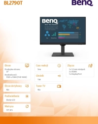 BENQ BL2790T łączy produktywność i komfort oglądania. Technologia IPS zapewnia spójne kolory i szerokie kąty widzenia, a częstotliwość odświeżania 100 Hz gwarantuje płynniejszy ruch podczas pracy w arkuszach, prezentacjach i wideo. Dzięki szybkiemu czasowi reakcji 5 ms minimalizuje rozmycia i smużenie.