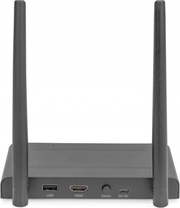 Nadajnik oferuje przelotowe wyjście HDMI, dzięki czemu możesz podglądać sygnał lokalnie i jednocześnie przesyłać go bezprzewodowo.