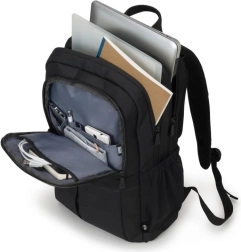 Zamykana komora na laptop oferuje podwójną ochronę dla urządzeń o przekątnej 15–17,3 cala: dzięki otaczającej piance o wysokiej gęstości (HDF) oraz pewnemu mocowaniu za pomocą elastycznego paska zabezpieczającego. Pojemna komora główna zapewnia wystarczająco dużo miejsca na dokumenty lub inne niezbędne rzeczy. Dzięki kieszeni na tablet do 12,9" oraz paskowi do bezpiecznego przenoszenia słuchawek Twoi towarzysze podróży są całkowicie bezpieczni. Przestronna przednia kieszeń pomaga utrzymać porządek dzięki funkcjonalnym przegrodom na smartfon, powerbank, długopisy i inne akcesoria mobilne. W zewnętrznych kieszeniach można umieścić butelkę z wodą i parasol, oszczędzając miejsce w plecaku. Ergonomiczne, wyściełane plecy, wygodny pasek na ramię oraz pasek do mocowania na uchwycie walizki zapewniają komfort podczas transportu plecaka do pracy, na uczelnię lub w dłuższe podróże.