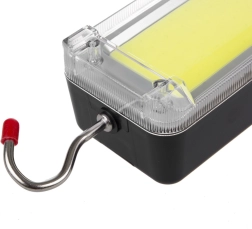 Dla maksymalnej elastyczności lampa ma obrotowy haczyk do zawieszenia, magnesy do mocowania na metalowych powierzchniach oraz klips w obrotowej rękojeści do stabilnego przymocowania do stołu czy półki. Zasilanie z dwóch akumulatorów ładowalnych 1200 mAh zapewnia do 4–6 godzin pracy, a ładowanie jest proste dzięki kablowi USB.